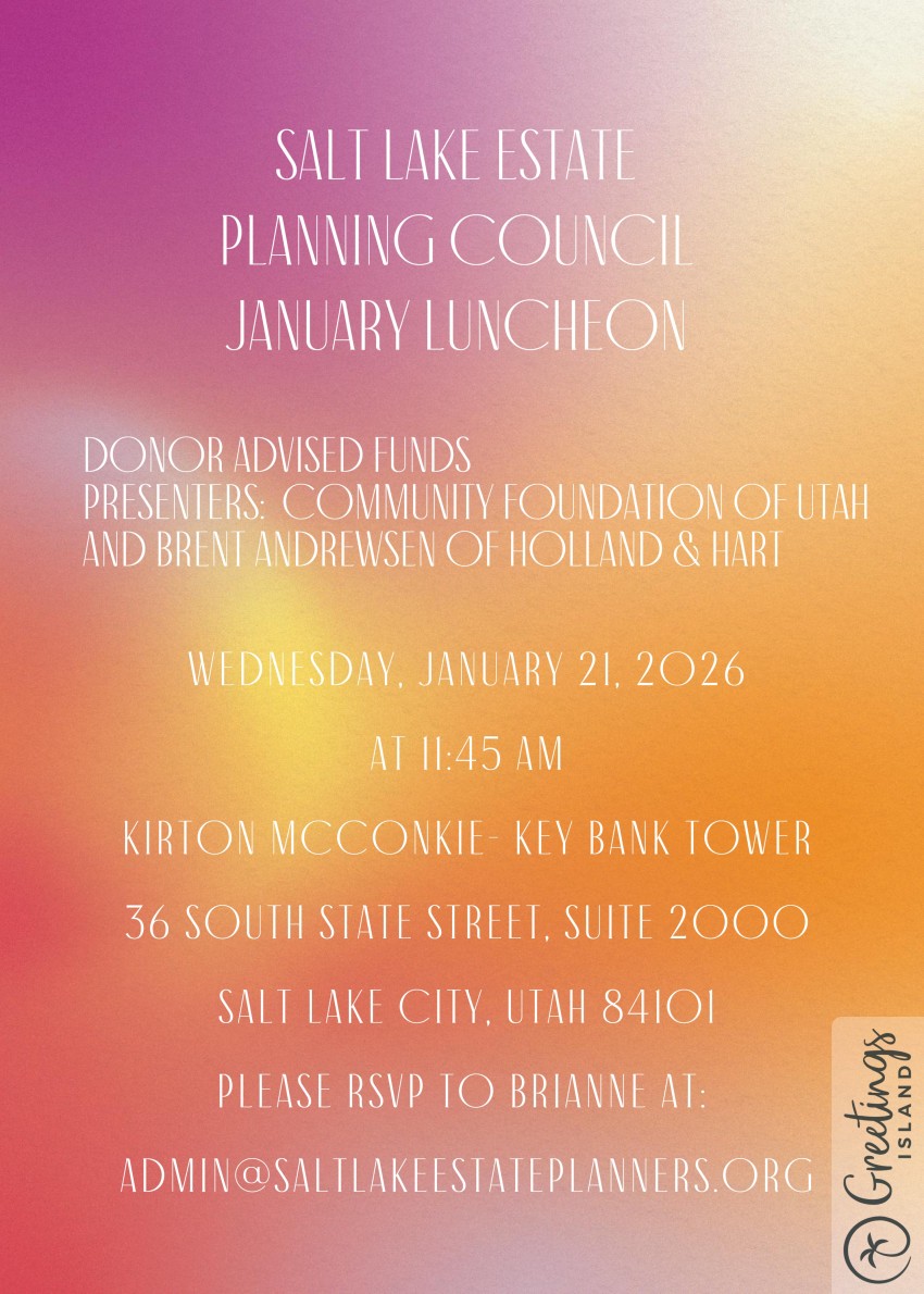 2026 SLEPC January Luncheon- Donor Advised Funds